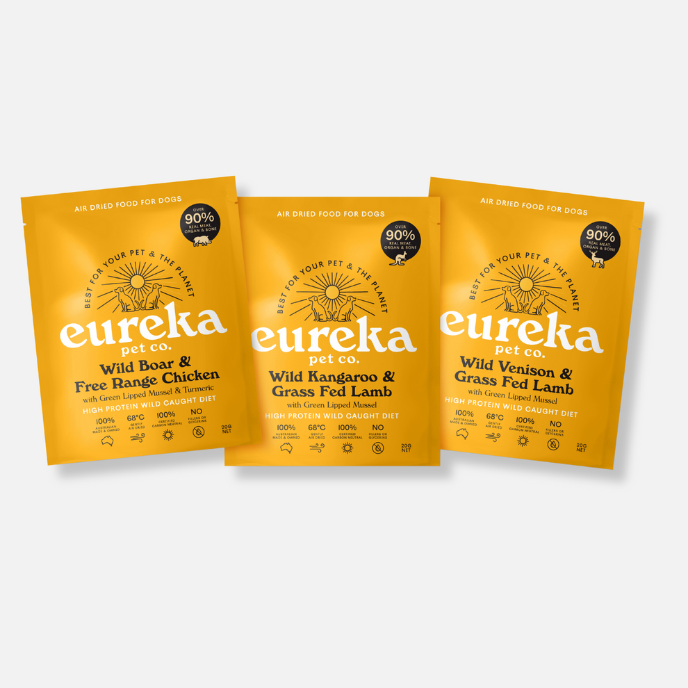 We are proud supporters of Australian businesses and farmers! Over 99% of Eureka dog food recipes are made from Australian-sourced ingredients. All our proteins are Australian sourced - from sustainably harvested Kangaroo, Wild Venison and Wild Boar to free-range Chicken and grass-fed Lamb.