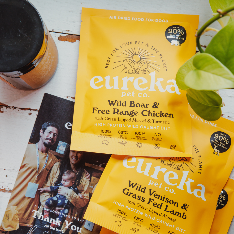 We are proud supporters of Australian businesses and farmers! Over 99% of Eureka dog food recipes are made from Australian-sourced ingredients. All our proteins are Australian sourced - from sustainably harvested Kangaroo, Wild Venison and Wild Boar to free-range Chicken and grass-fed Lamb.