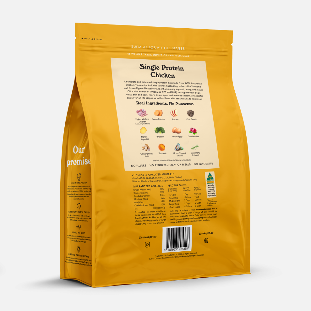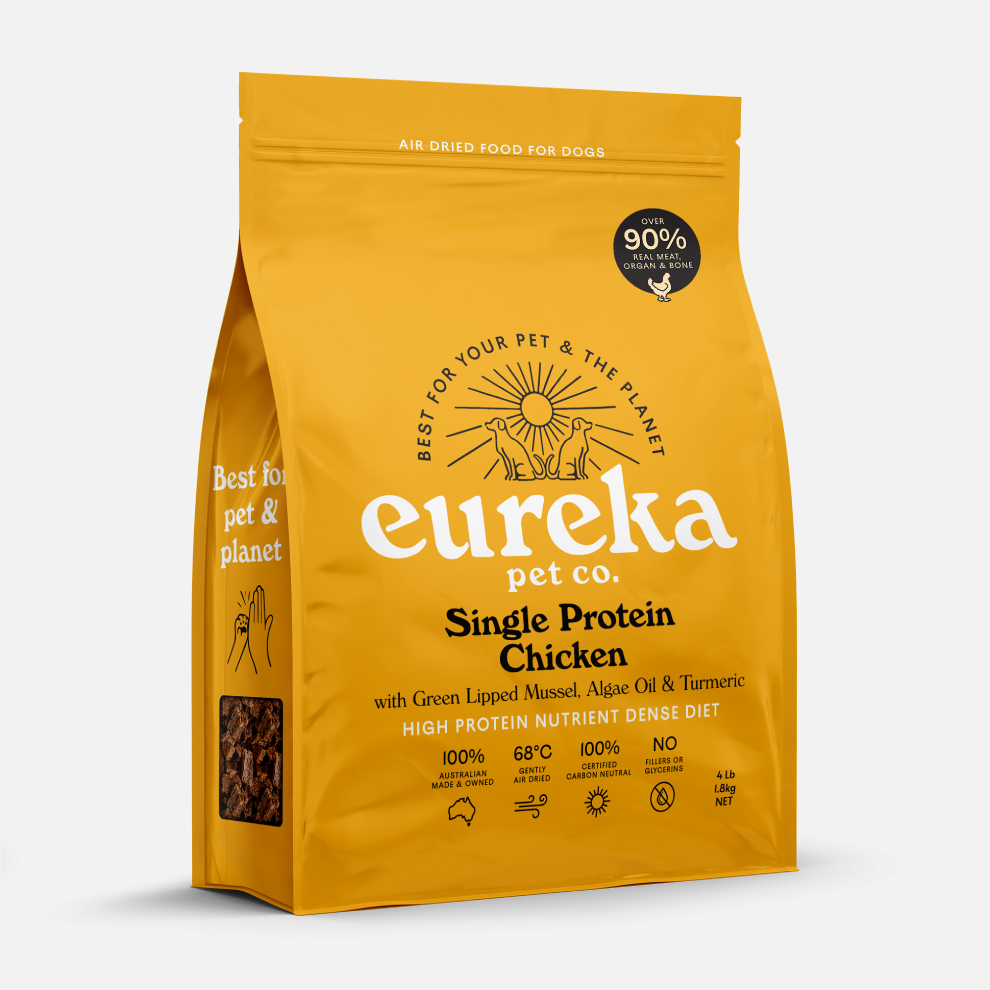 We are proud supporters of Australian businesses and farmers! Over 99% of Eureka dog food recipes are made from Australian-sourced ingredients. All our proteins are Australian sourced - from sustainably harvested Kangaroo, Wild Venison and Wild Boar to free-range Chicken and grass-fed Lamb.