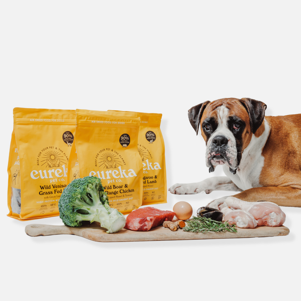 We are proud supporters of Australian businesses and farmers! Over 99% of Eureka dog food recipes are made from Australian-sourced ingredients. All our proteins are Australian sourced - from sustainably harvested Kangaroo, Wild Venison and Wild Boar to free-range Chicken and grass-fed Lamb.